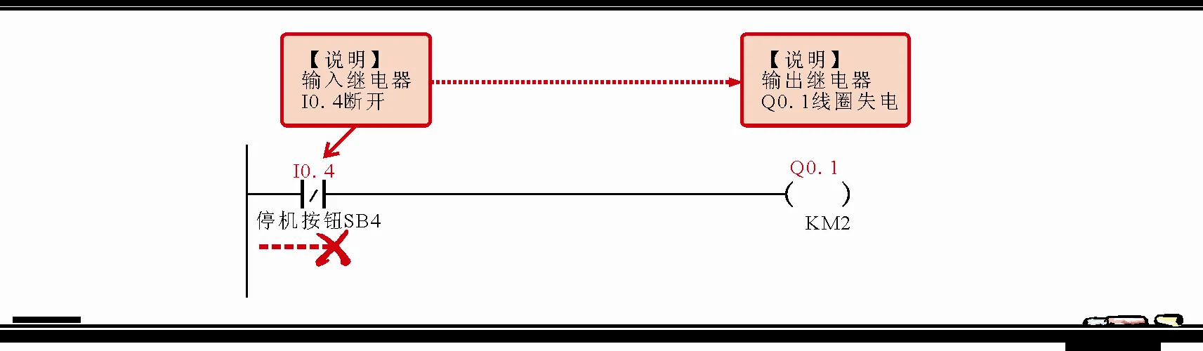 按下停止按钮SB4,控制交流接触器KM2失电,电动机M2停转;