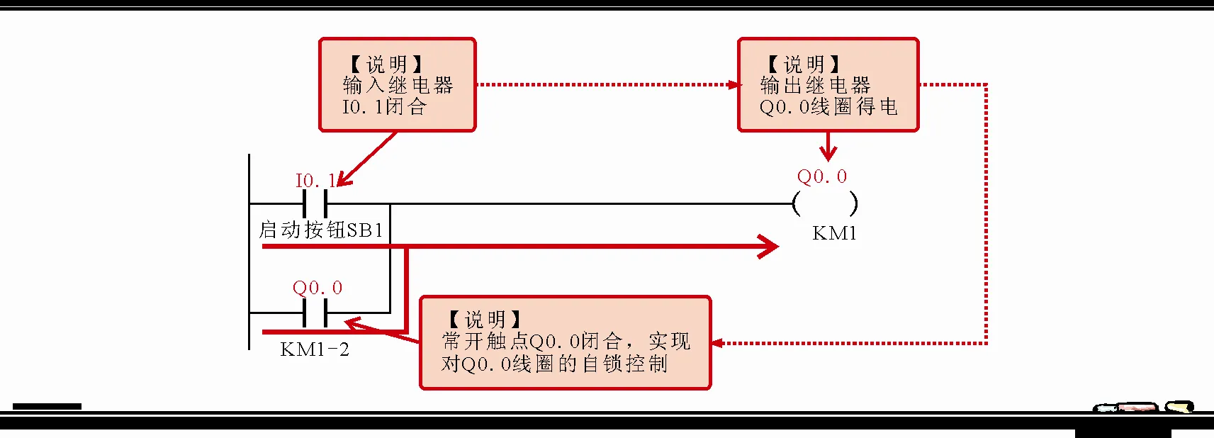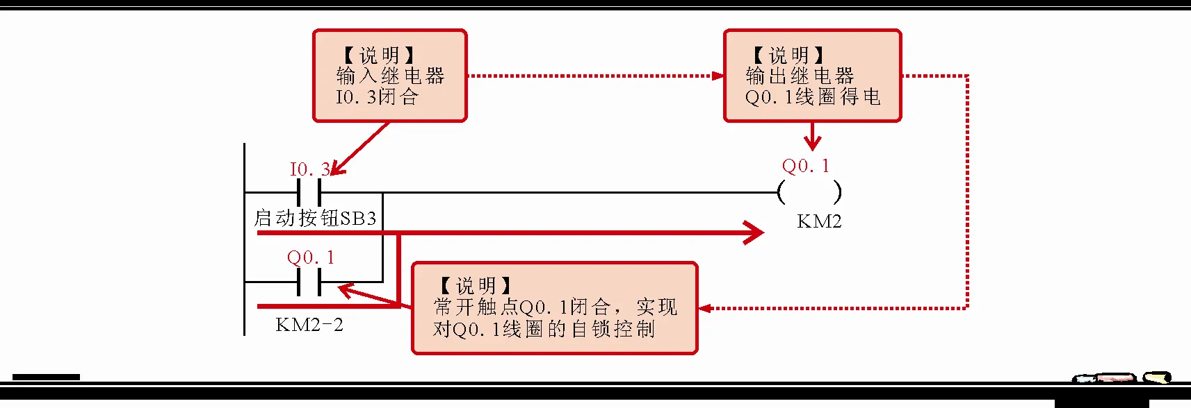 例如,要求按下起动按钮SB1控制接触器KM1得电,电动机M起动,松开按钮SB1后,由接触器KM的自锁触点保持控制信号接通电动机仍运转。