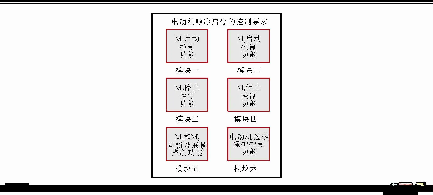 根据编程案例中对控制过程的描述,我们可以将整个控制关系划分成6部分,如下图所示。