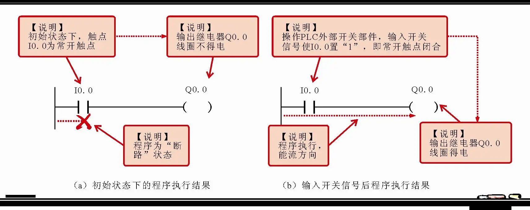 确定触点的初始状态取决于触点动作时对线圈的控制关系,一般来说,若需要闭合时,线圈才执行动作,则其初始状态为常开触点;若需要其断开时,控制线圈执行某一动作,则其初始状态应为常闭触点。