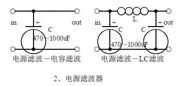电源滤波是在负载RL两端并联一只较大容量的电容器。由于电容两端电压不能突变,因而负载两端的电压也不会突变,使输出电压得以平滑,达到滤波的目的。